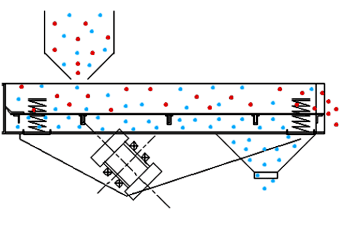 3、閉合電源開關,確認振動電機同步反向旋轉,進行10-20分鐘空運轉,設備在運行時如有異常聲音,應迅速關機進行檢查處理。設備運轉正常后,可將少量需篩分的物料通過進料口設入篩機內,確認物料向出料口方向行進,然后逐漸增加到所需和所能承受的給料量。