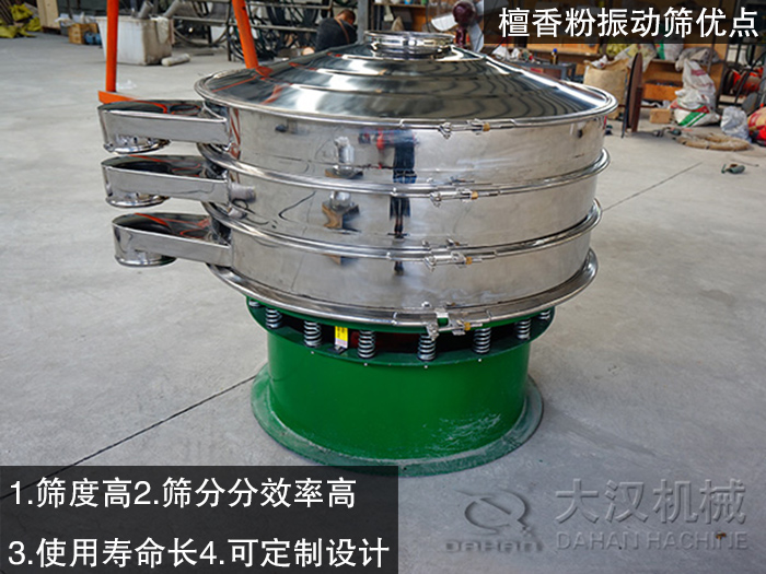 檀香粉是能夠清心安神,消除疲勞的作用,在使用前,要把它加工成適合使用的顆粒,這樣才可以讓其物盡其用那么作為一種粉末狀物料,在加工時如何進行篩分成一定的規格呢?應該選用什么振動篩呢?