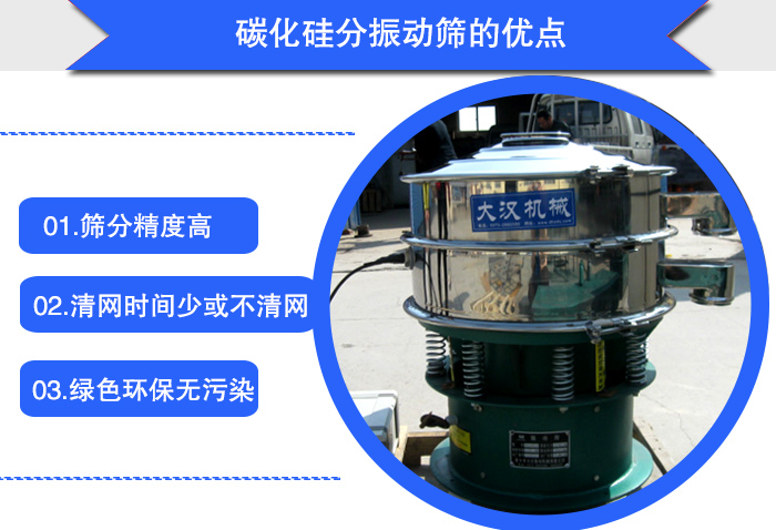 碳化硅粉是粉末狀的物料,在篩分時會出現(xiàn)靜電、粘附、團聚導(dǎo)致卡堵網(wǎng)的現(xiàn)象,所以大漢機械的技術(shù)人員推薦使用超聲波振動篩。