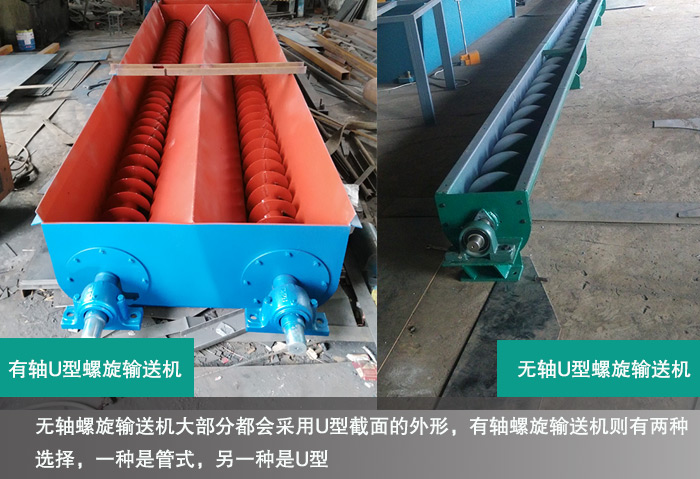 (2)有軸螺旋輸送機(jī)則有兩種選擇,一種是管式,另一種是U型,要求沒(méi)有無(wú)軸螺旋輸送機(jī)的苛刻。