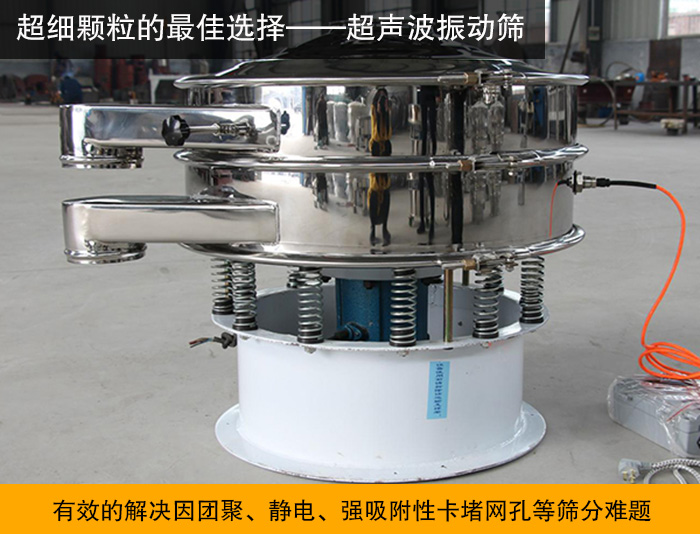 超聲筆振動篩是在傳統振動篩的基礎上安裝了一個低振幅、高頻率的超聲振動波(機械波),以改善超微細粉體的篩分性能,廣泛應用于制藥、冶金、化工、選礦、食品等要求精細篩分過濾的行業。篩分過濾精度高,能有效的解決因團聚、靜電、強吸附性卡堵網孔等篩分難題,是當前網孔堵塞有效的解決方法。針對超細顆粒合金粉末高精細、高靜電、高密度、輕比重的特性,超聲波振動篩可以輕而易舉的解決,是極其適合的設備。