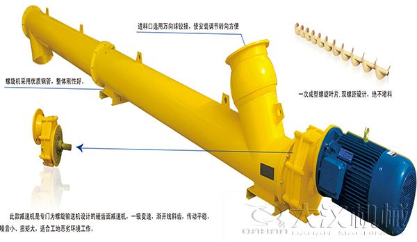 3、低噪音、適應性強:螺旋輸送機密封性好,外殼采用無縫鋼管制作而成,端部采用法蘭互相連接成一體,剛性好,既可以全封閉輸送,防止粉塵污染,利于,也可敞開輸送;